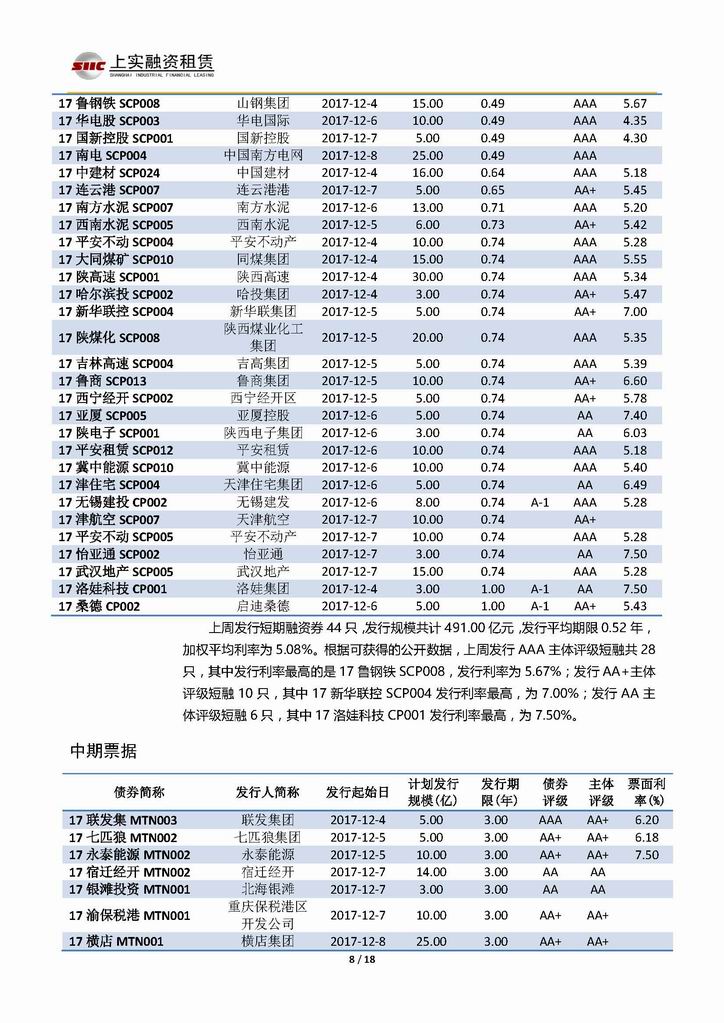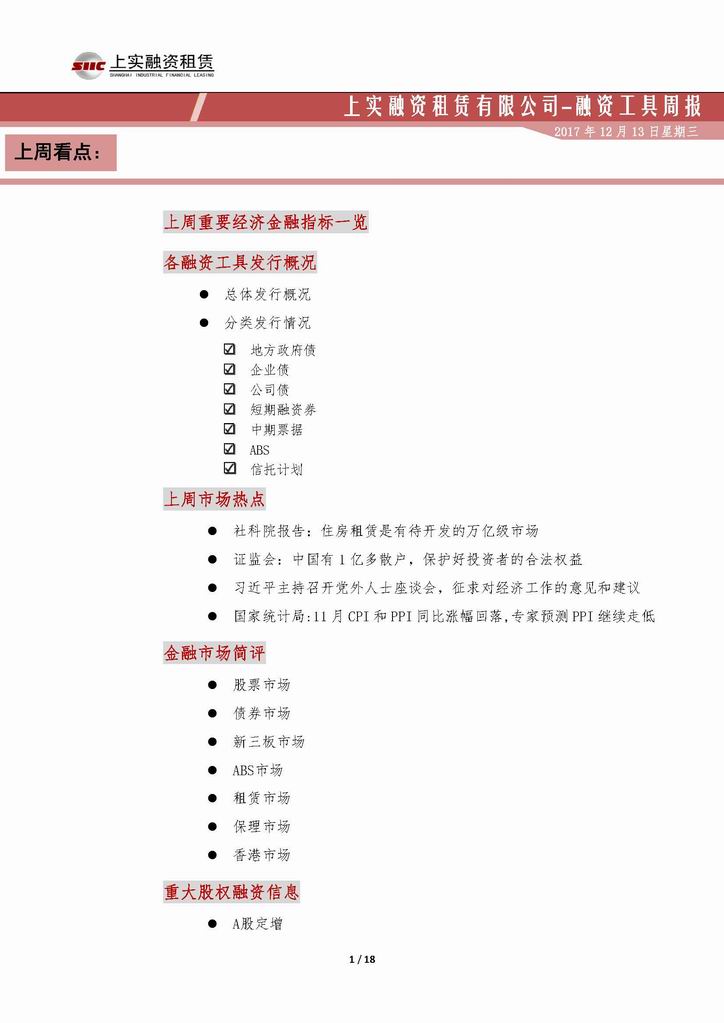 | 當(dāng)前位置:新聞中心 > 上實(shí)-融資工具周報(bào)20171201-20171208 | |||||