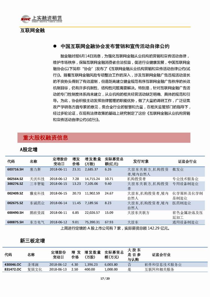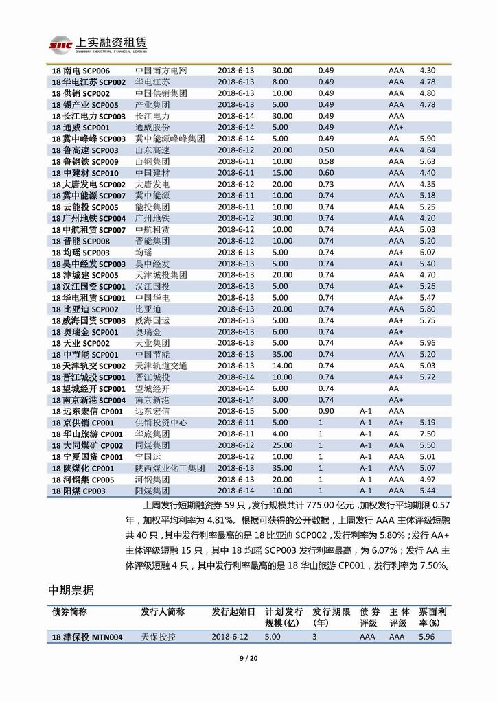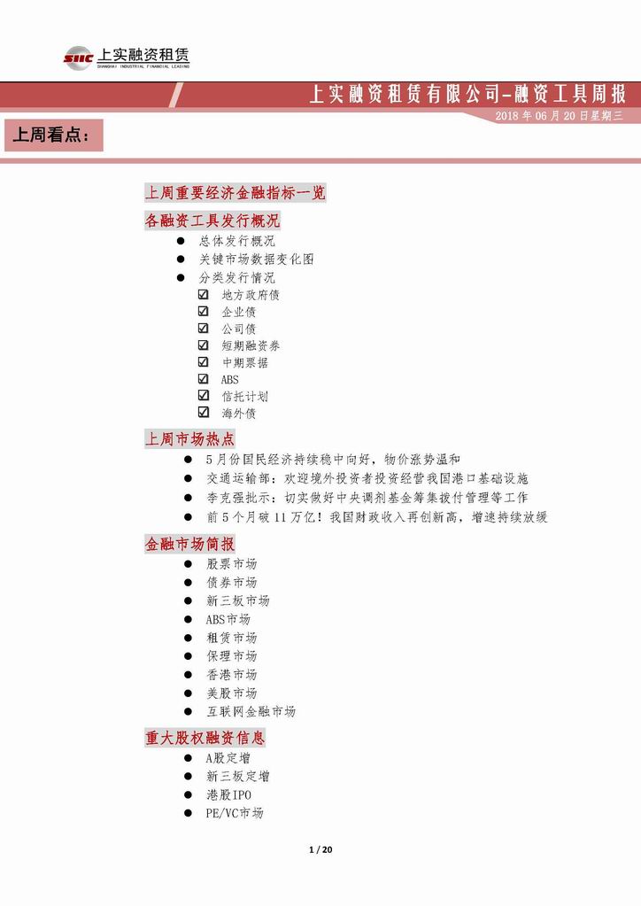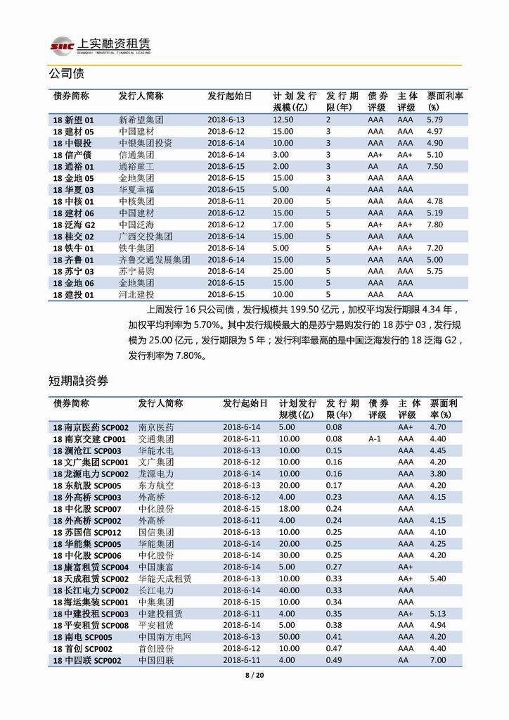 | 當(dāng)前位置:新聞中心 > 上實(shí)-融資工具周報(bào)20180608-20180615 | |||||