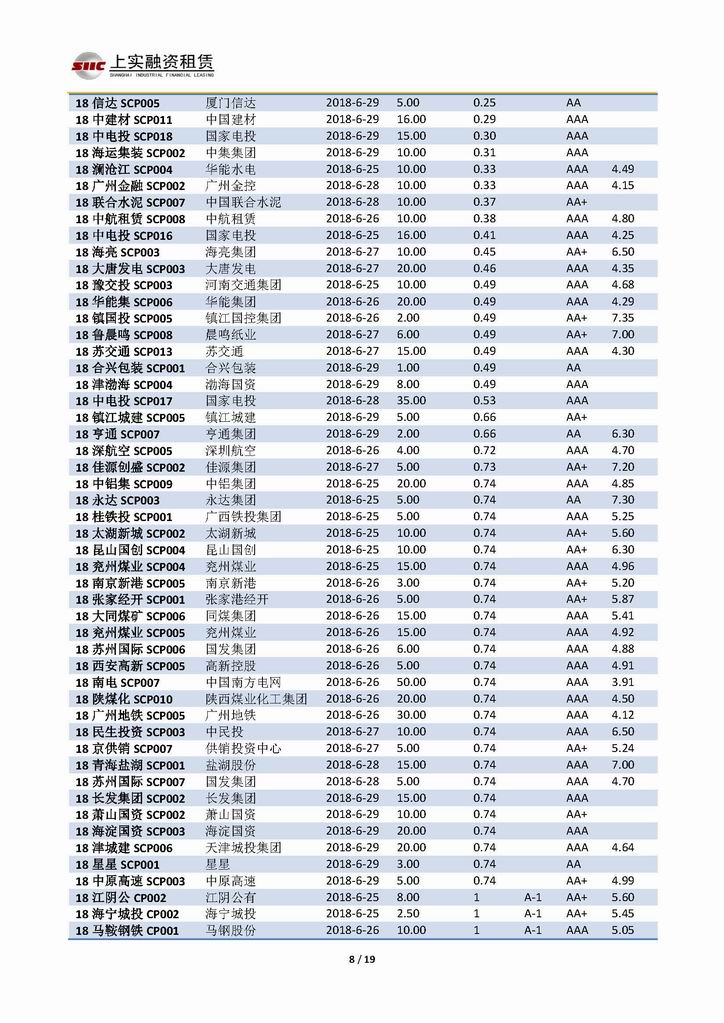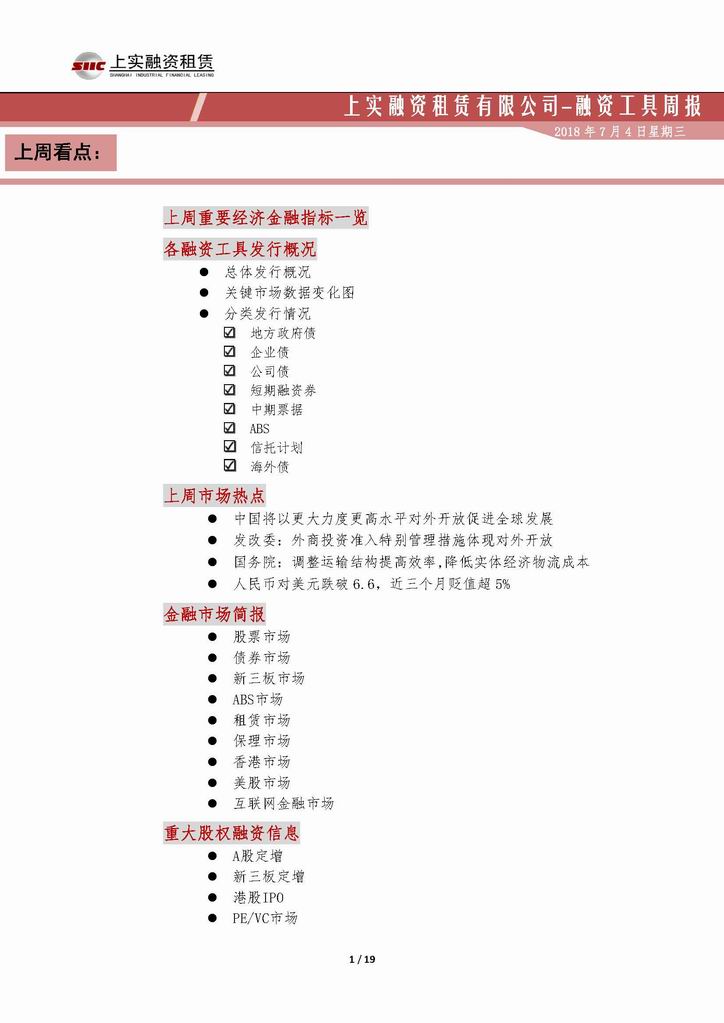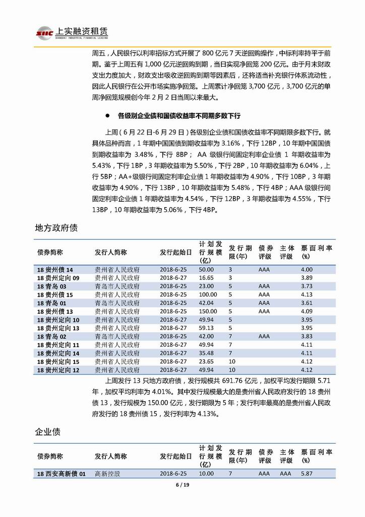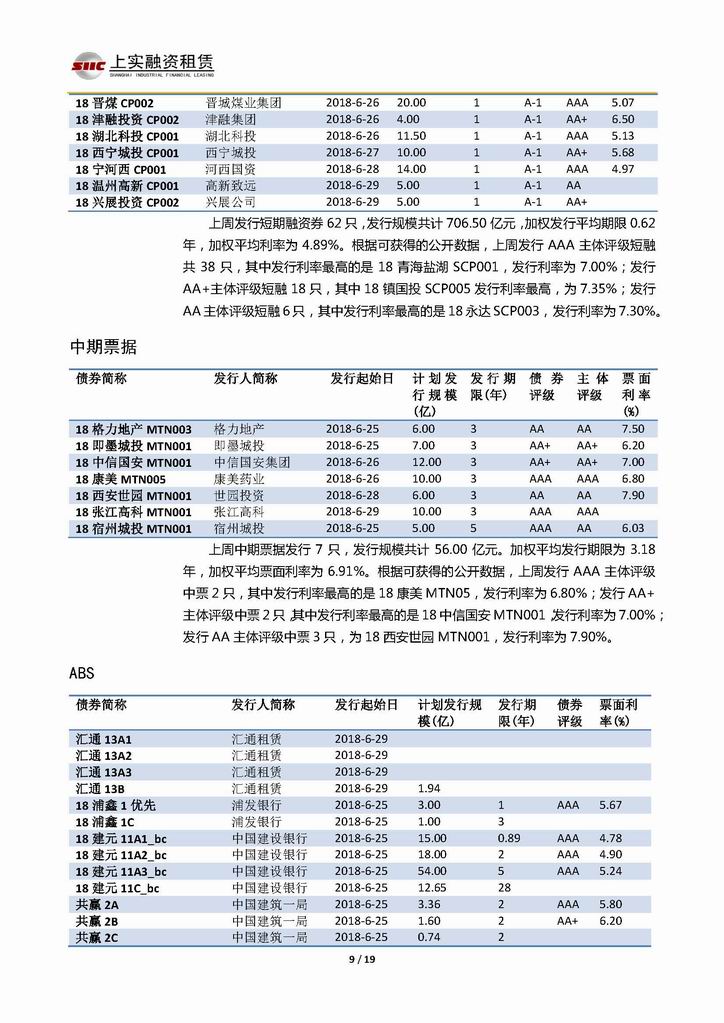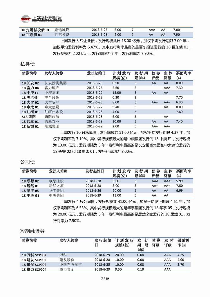 | 當(dāng)前位置:新聞中心 > 上實(shí)-融資工具周報(bào)20180622-20180629 | |||||
