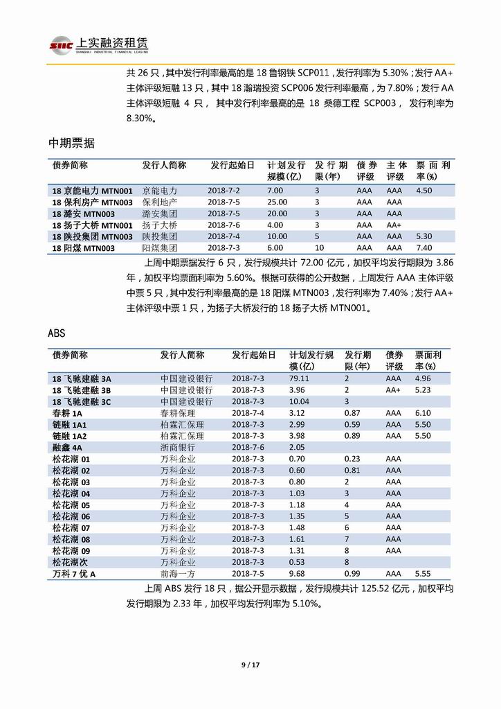 | 當(dāng)前位置:新聞中心 > 上實(shí)-融資工具周報(bào)20180629-20180706 | |||||