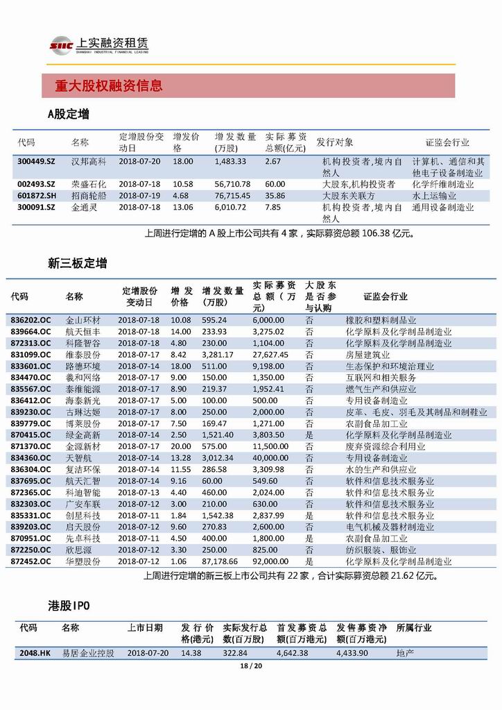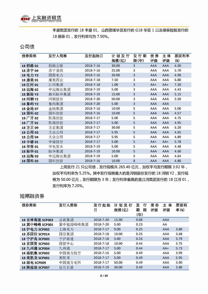 | 當前位置:新聞中心 > 上實-融資工具周報20180713-20180720 | |||||