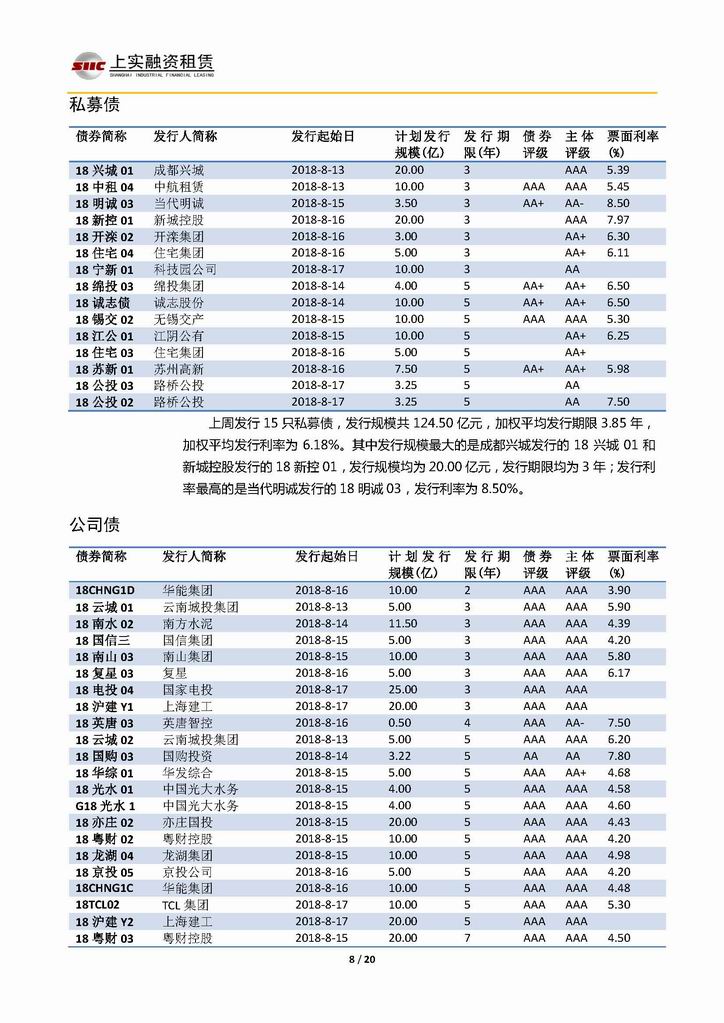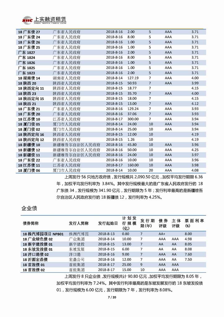 | 當(dāng)前位置:新聞中心 > 上實(shí)-融資工具周報(bào)20180810-20180817 | |||||