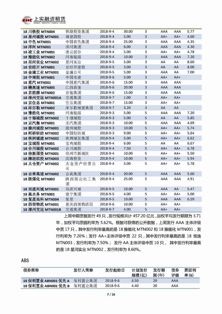 | 當(dāng)前位置:新聞中心 > 上實(shí)-融資工具周報(bào)20180831-20180907 | |||||