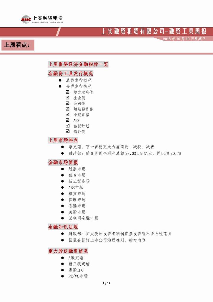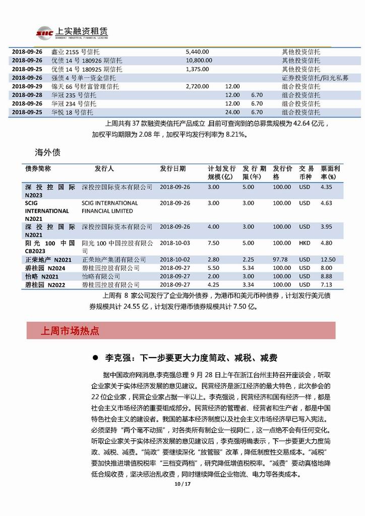 | 當(dāng)前位置:新聞中心 > 上實-融資工具周報20180921-20181005 | |||||