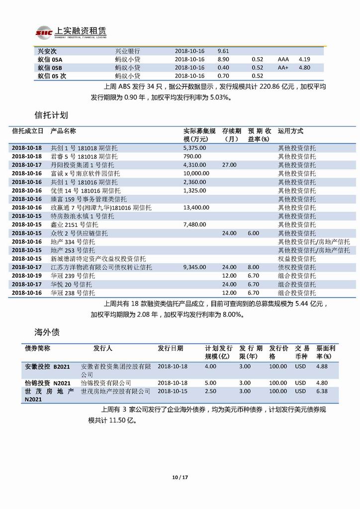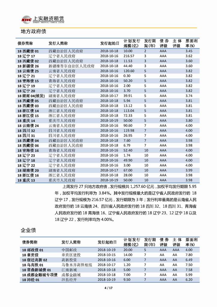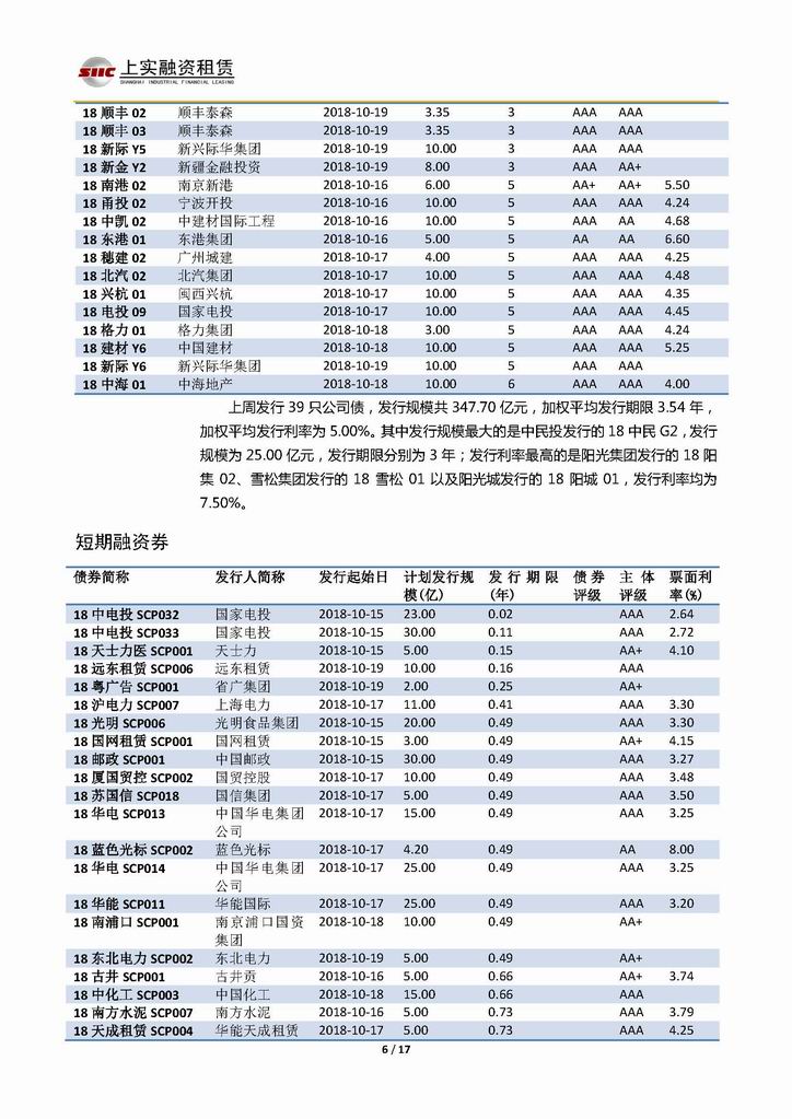 | 當(dāng)前位置:新聞中心 > 上實-融資工具周報20181012-20181019 | |||||