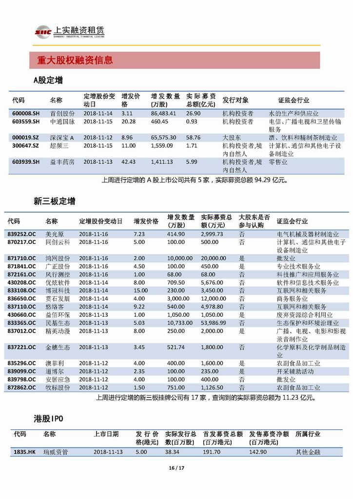 | 當(dāng)前位置:新聞中心 > 上實(shí)-融資工具周報(bào)20181109-20181116 | |||||