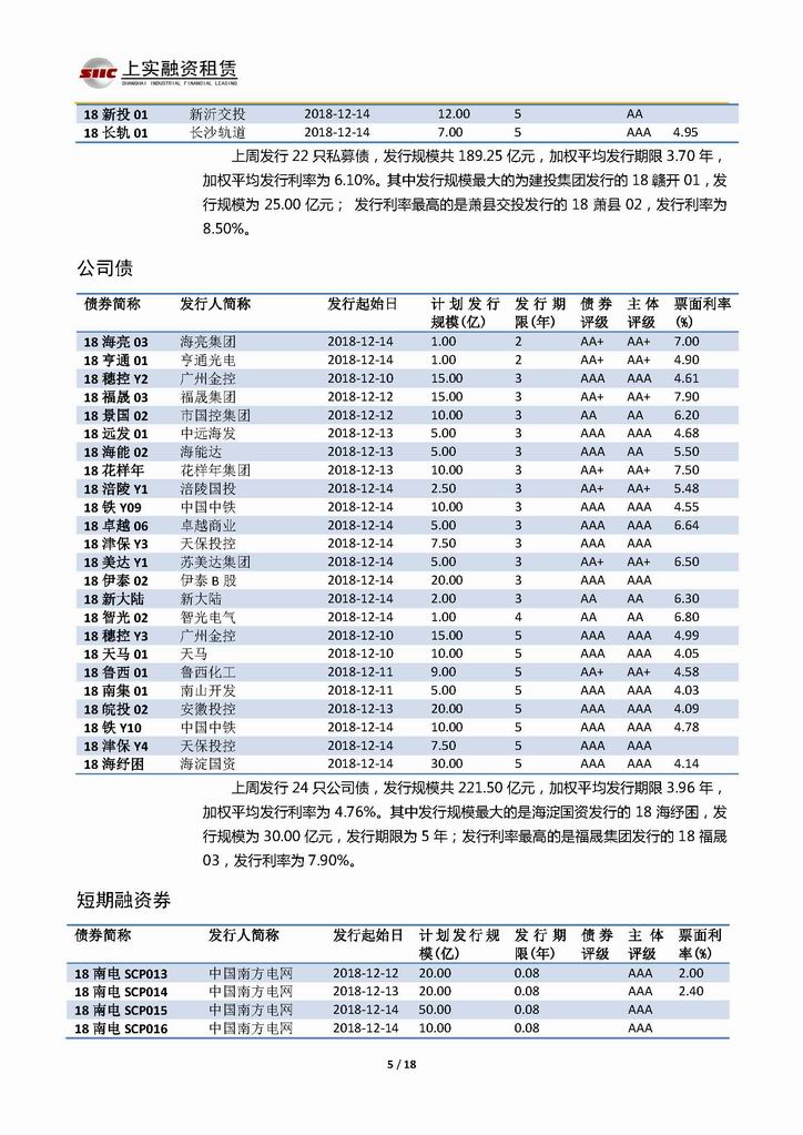 | 當(dāng)前位置:新聞中心 > 上實-融資工具周報20181207-20181214 | |||||