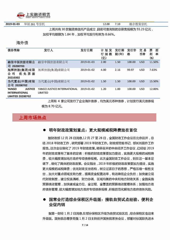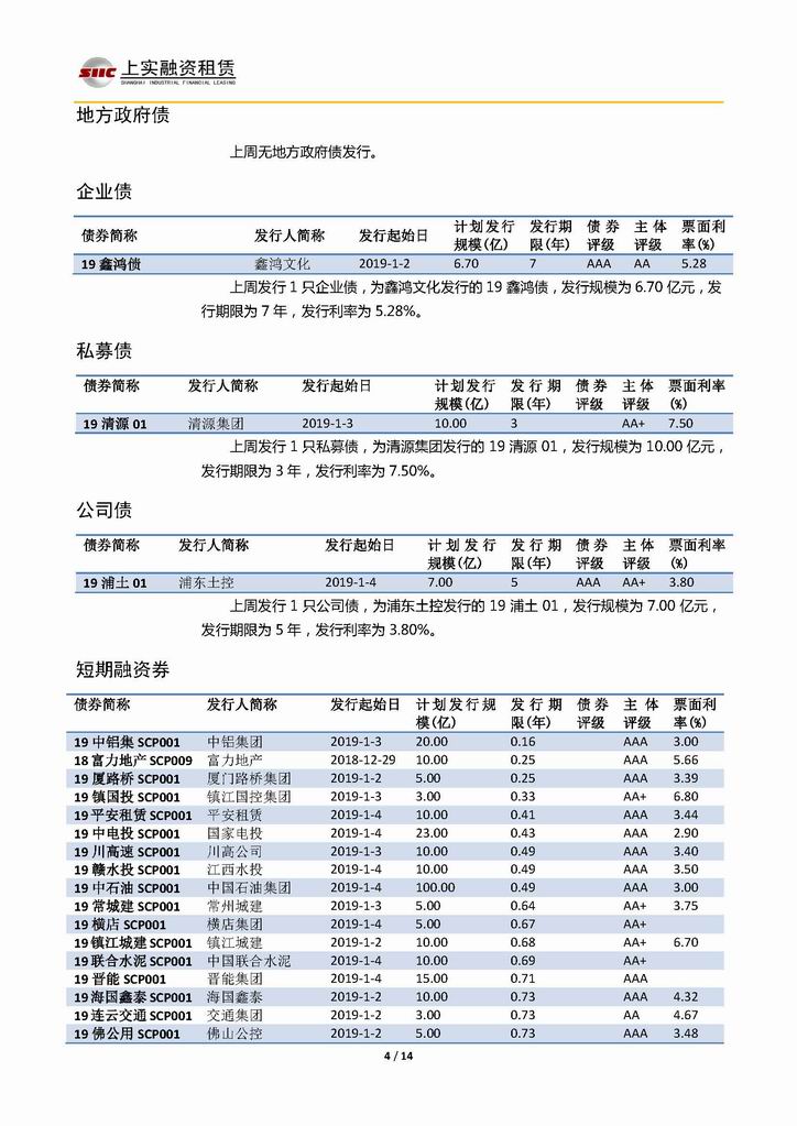| 當(dāng)前位置:新聞中心 > 上實(shí)-融資工具周報(bào)20181228-20180104 | |||||