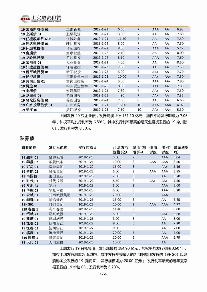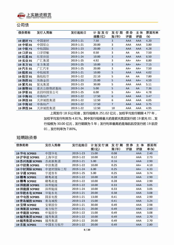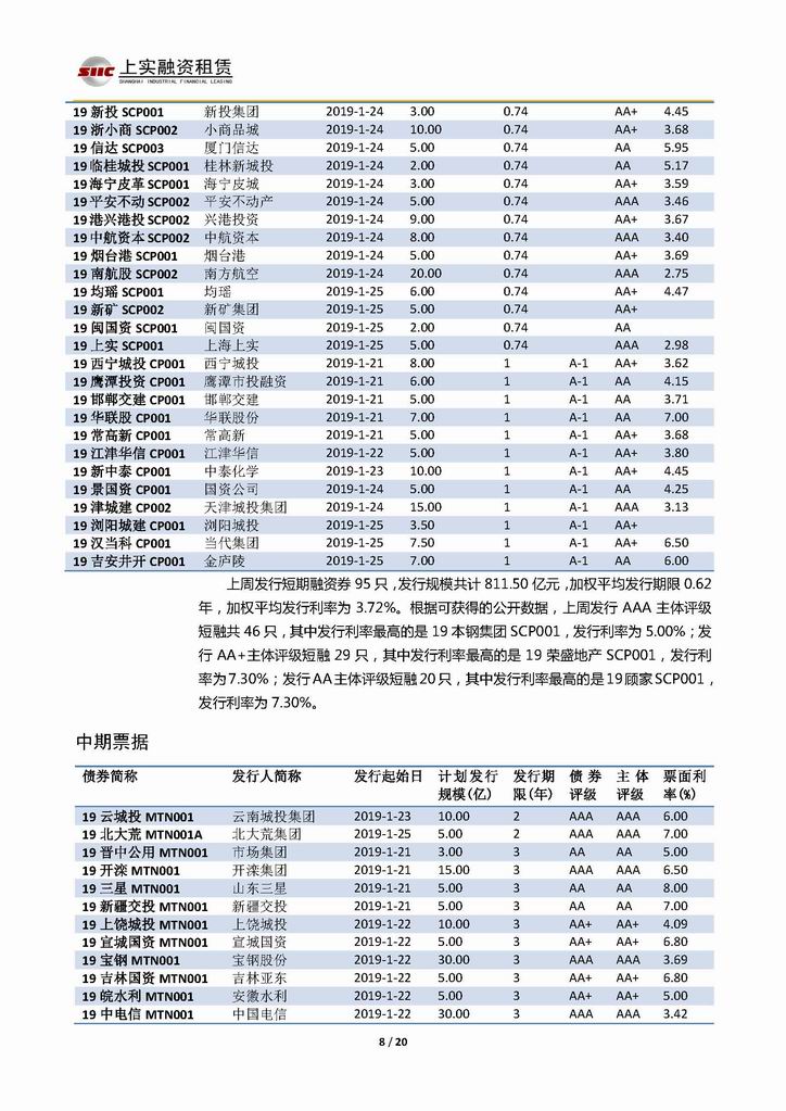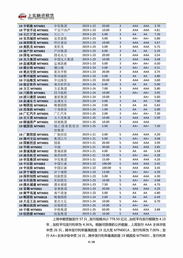 | 當(dāng)前位置:新聞中心 > 上實(shí)-融資工具周報(bào)20190118-20190125 | |||||