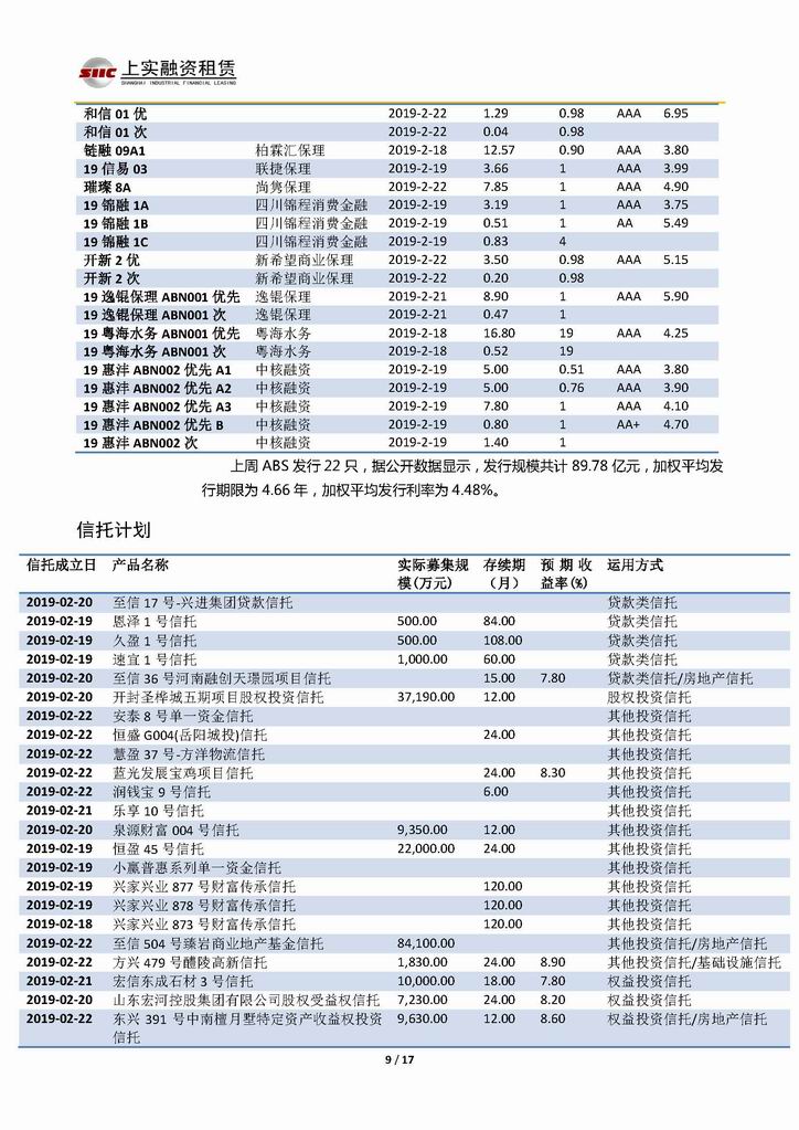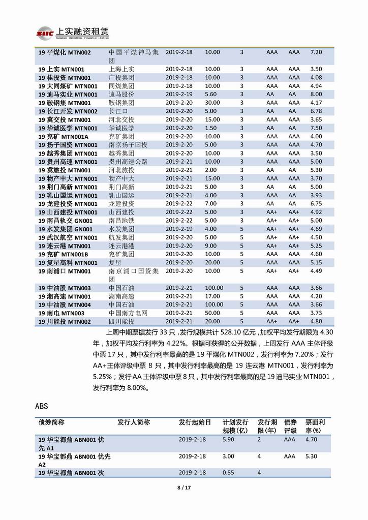 | 當(dāng)前位置:新聞中心 > 上實-融資工具周報20190215-20190222 | |||||