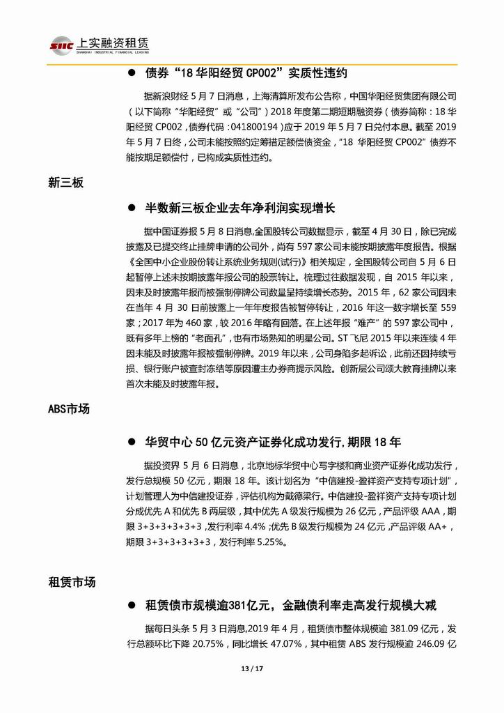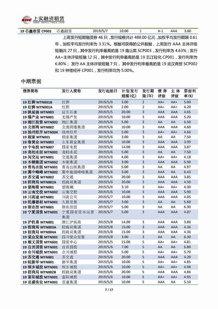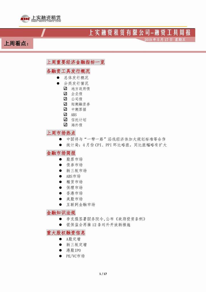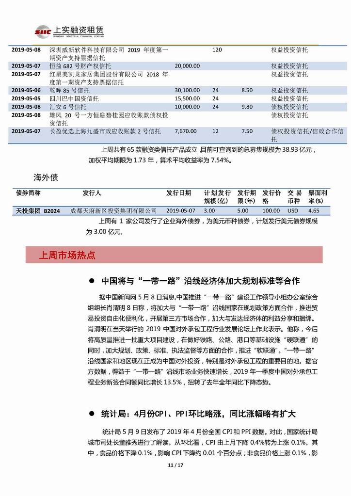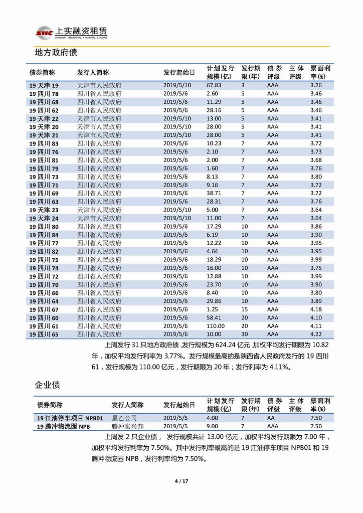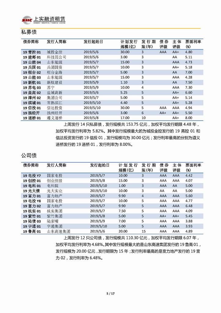 | 當前位置:新聞中心 > 上實-融資工具周報20190503-20190510 | |||||