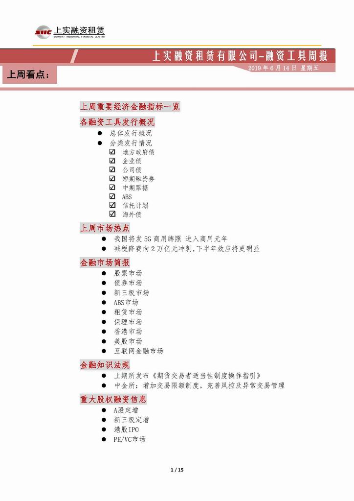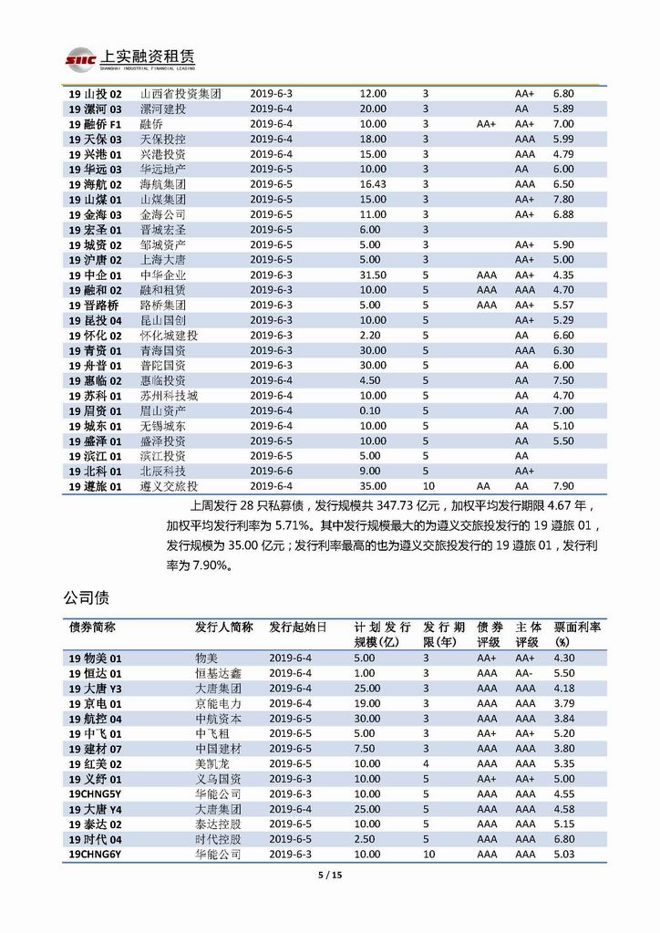 | 當(dāng)前位置:新聞中心 > 上實-融資工具周報20190531-20190607 | |||||