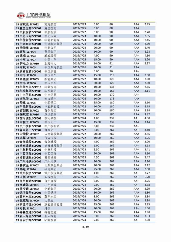 | 當(dāng)前位置:新聞中心 > 上實(shí)-融資工具周報(bào)2019.7.22-2019.7.26 | |||||