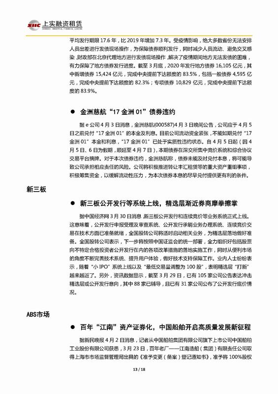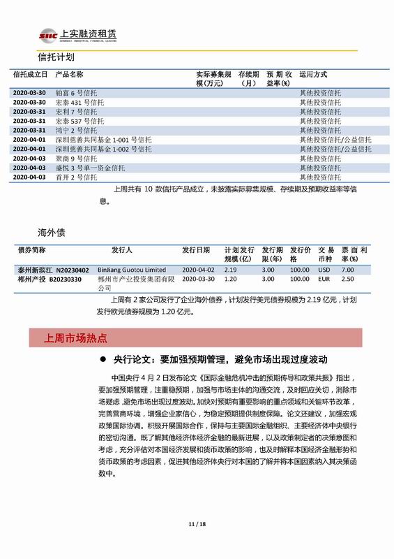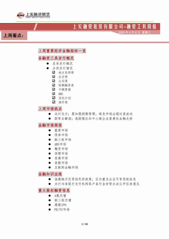 | 當(dāng)前位置:新聞中心 > 上實(shí)-融資工具周報(bào)2020.3.30-2020.4.3 | |||||