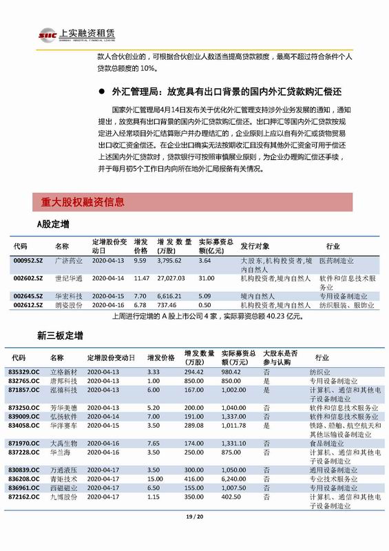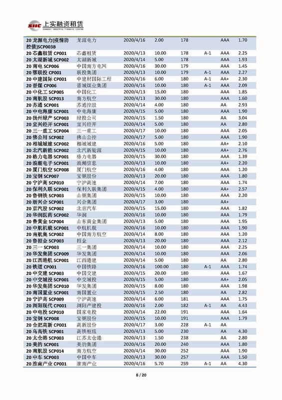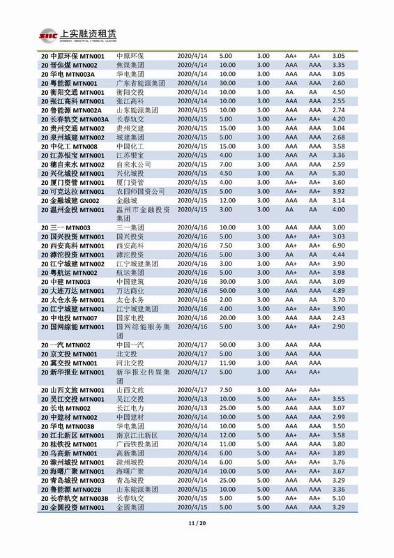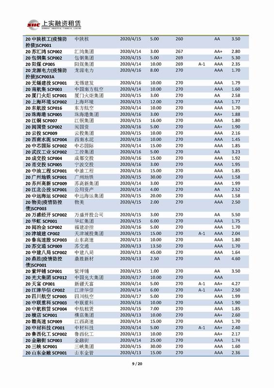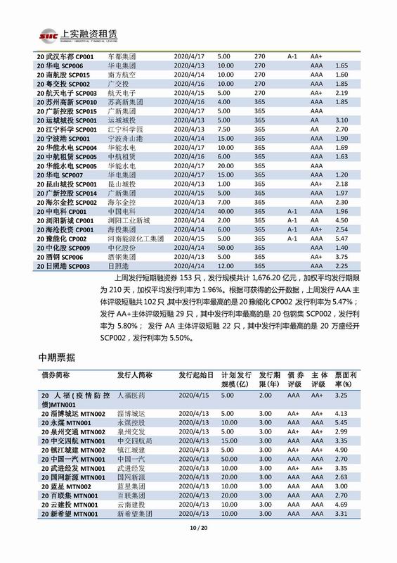 | 當(dāng)前位置:新聞中心 > 上實(shí)-融資工具周報(bào)2020.4.13-2020.4.17 | |||||