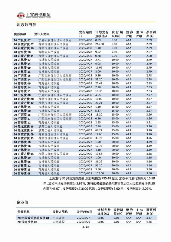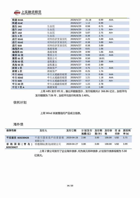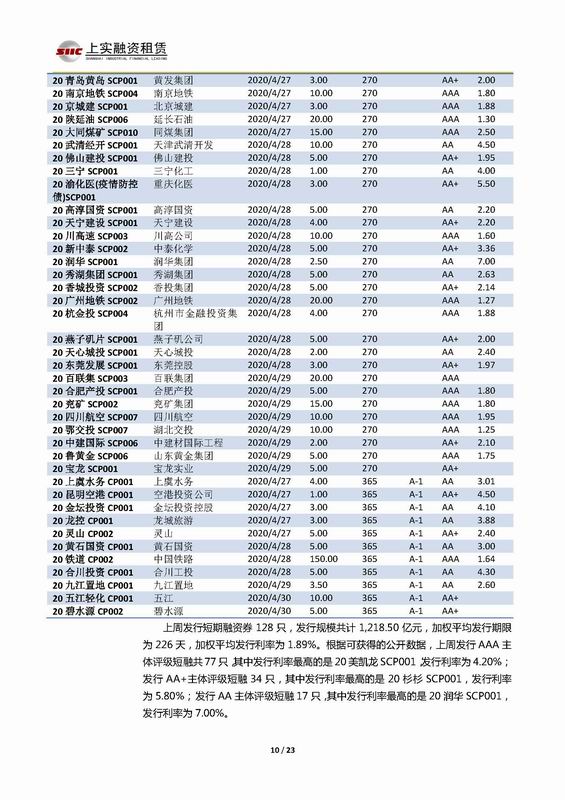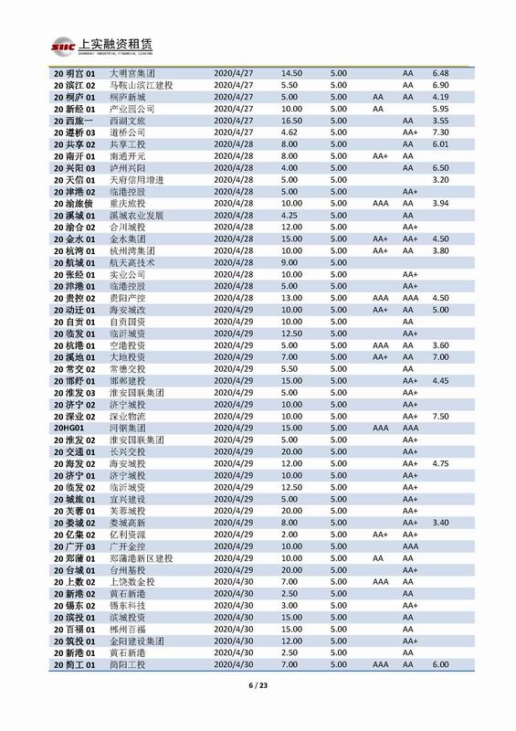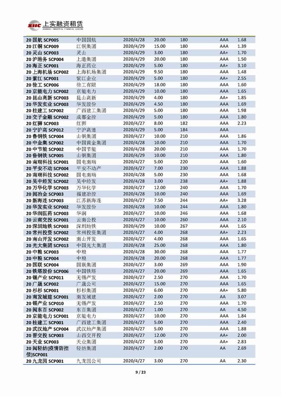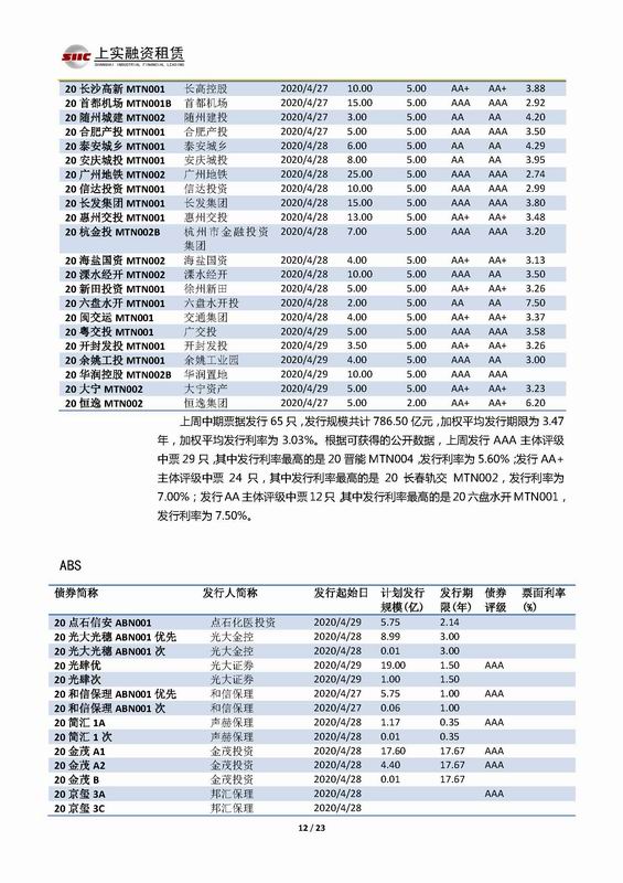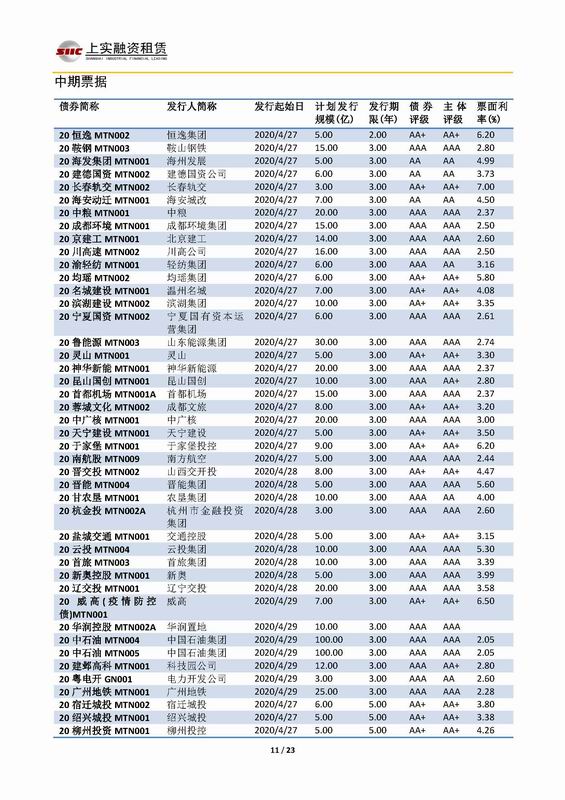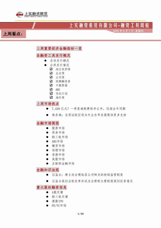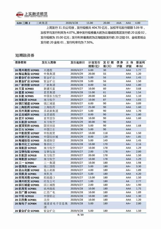 | 當前位置:新聞中心 > 上實-融資工具周報2020.4.27-2020.4.30 | |||||