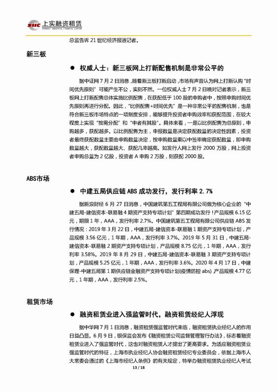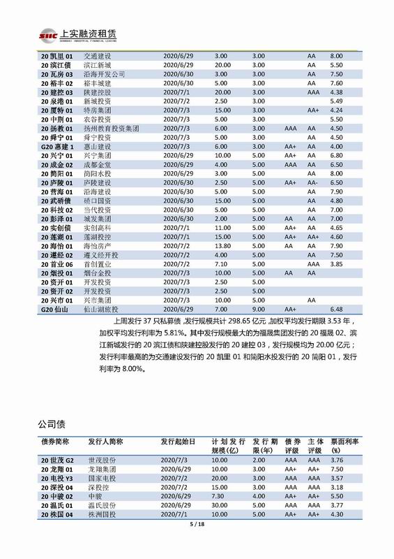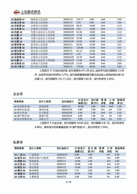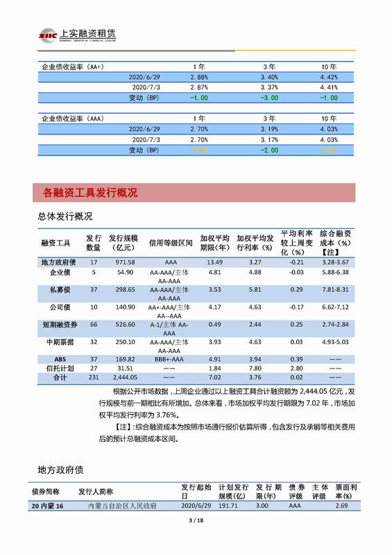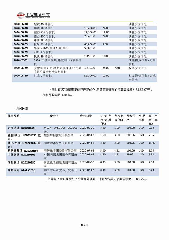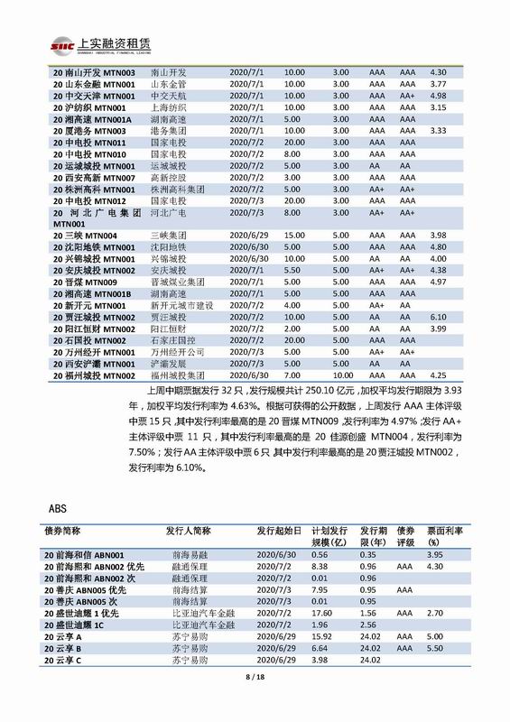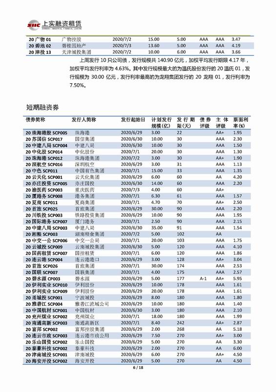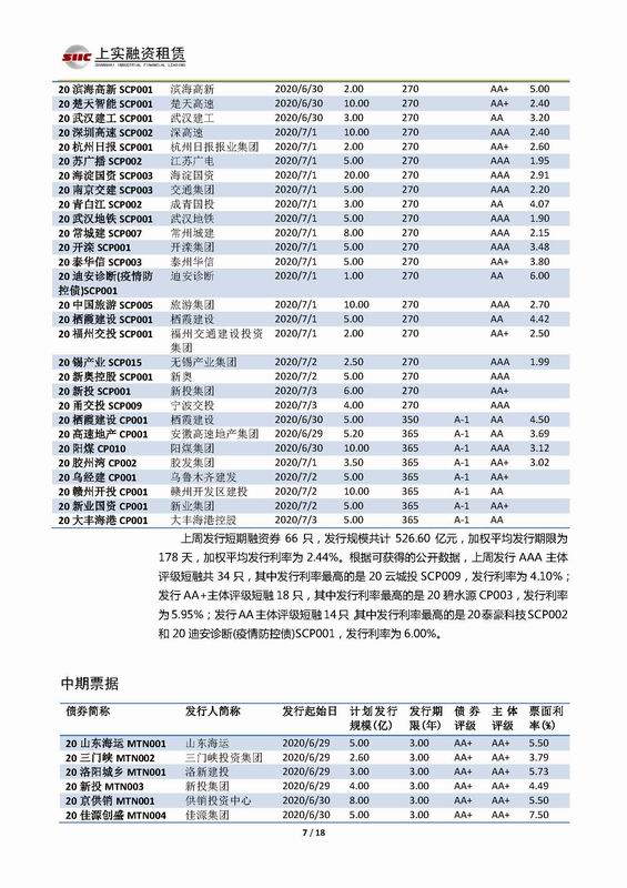 | 當(dāng)前位置:新聞中心 > 上實-融資工具周報-2020.6.29-2020.7.3 | |||||