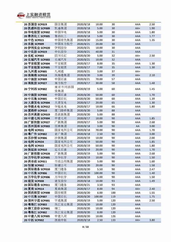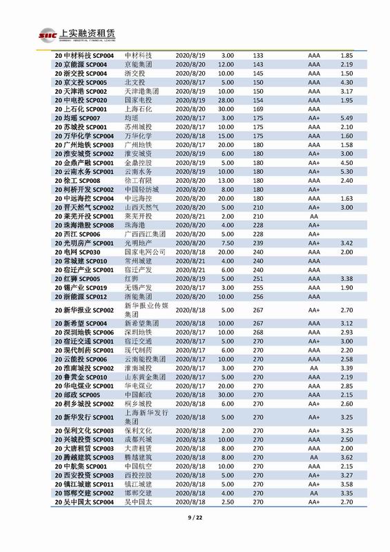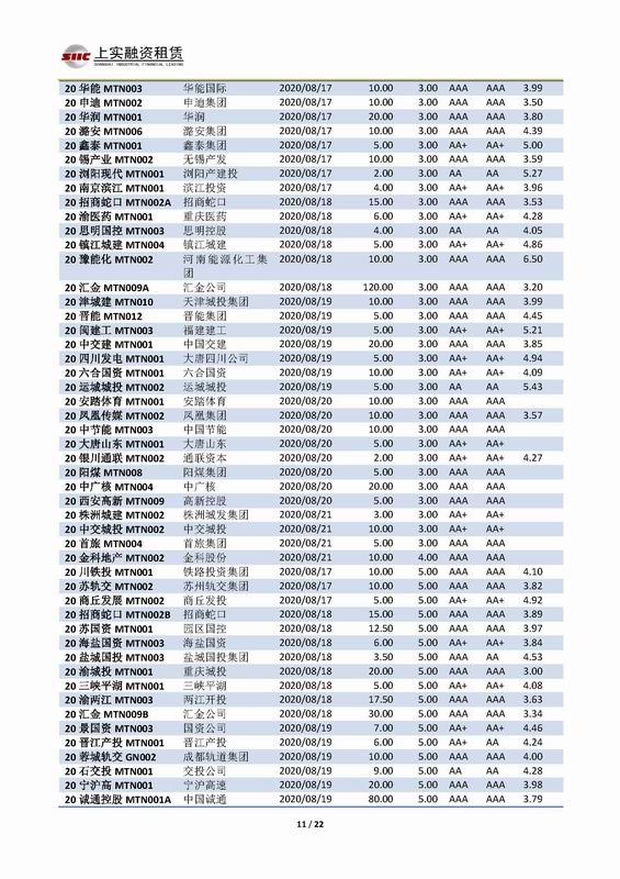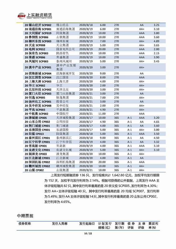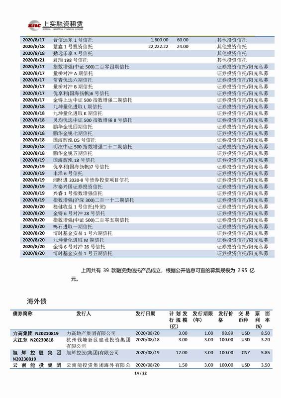 | 當(dāng)前位置:新聞中心 > 上實-融資工具周報2020.8.17-2020.8.21 | |||||