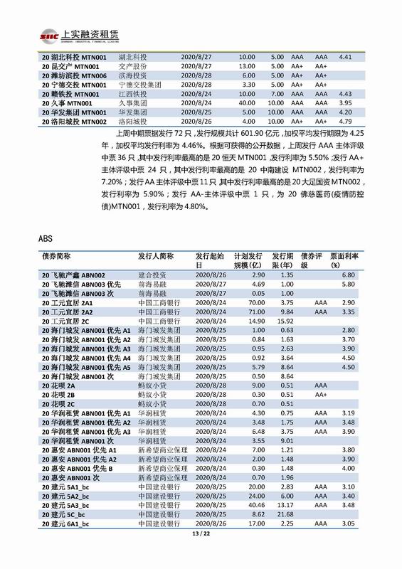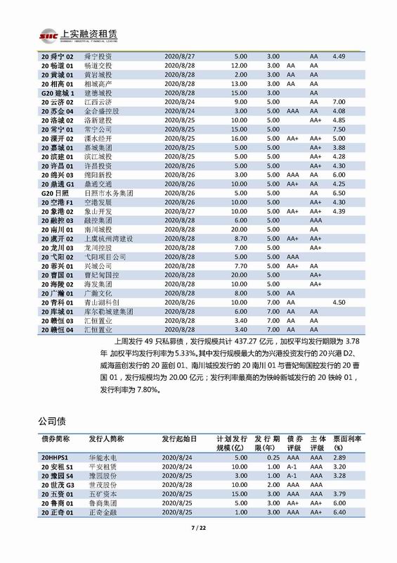 | 當(dāng)前位置:新聞中心 > 上實-融資工具周報20200824-20200828 | |||||
