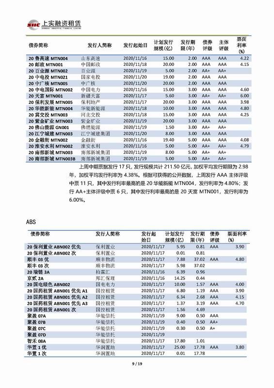 | 當前位置:新聞中心 > 上實-融資工具周報2020.11.16-2020.11.20 | |||||