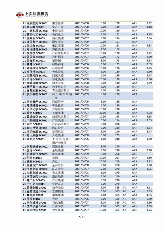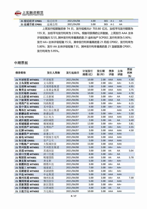 | 當(dāng)前位置:新聞中心 > 上實(shí)-融資工具周報(bào)2021.4.5-2021.4.9 | |||||