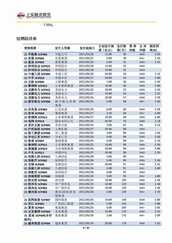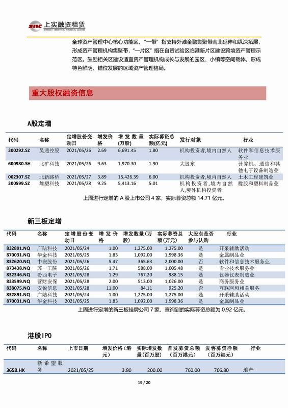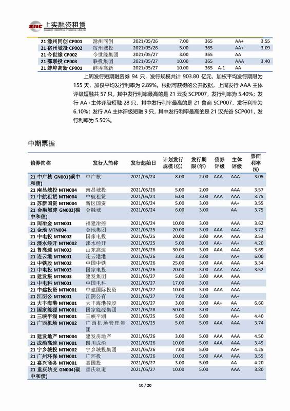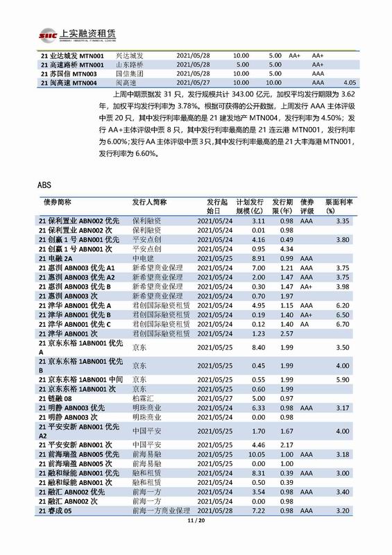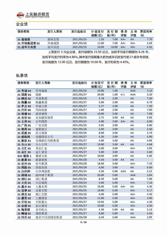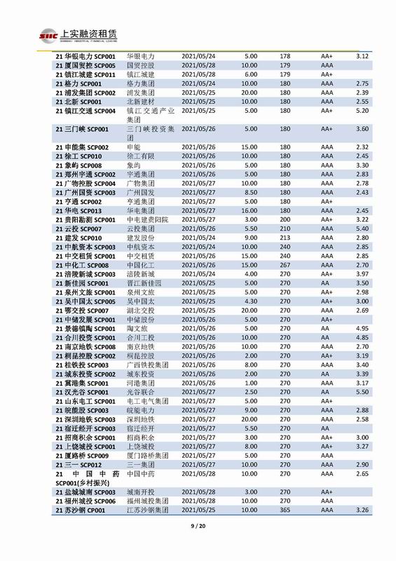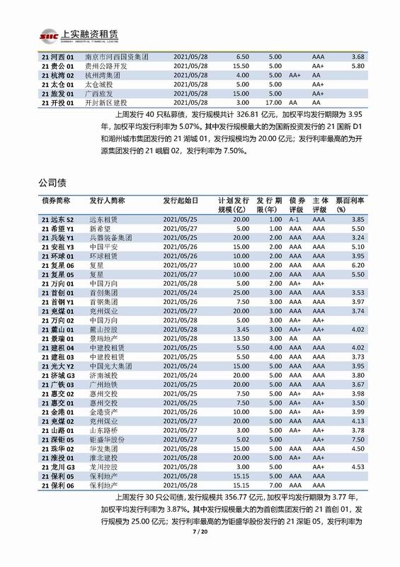 | 當(dāng)前位置:新聞中心 > 上實(shí)-融資工具周報(bào)2021.5.24-2021.5.28 | |||||