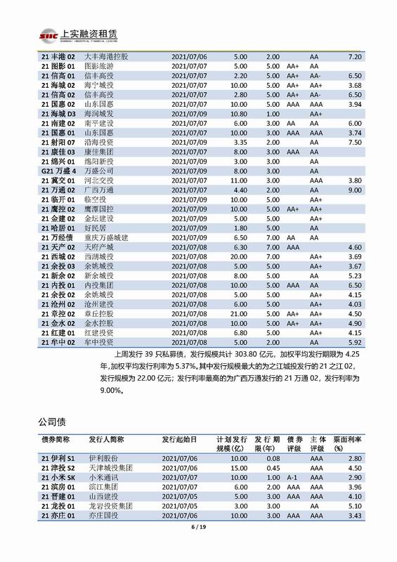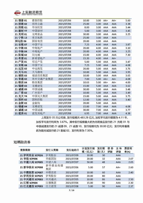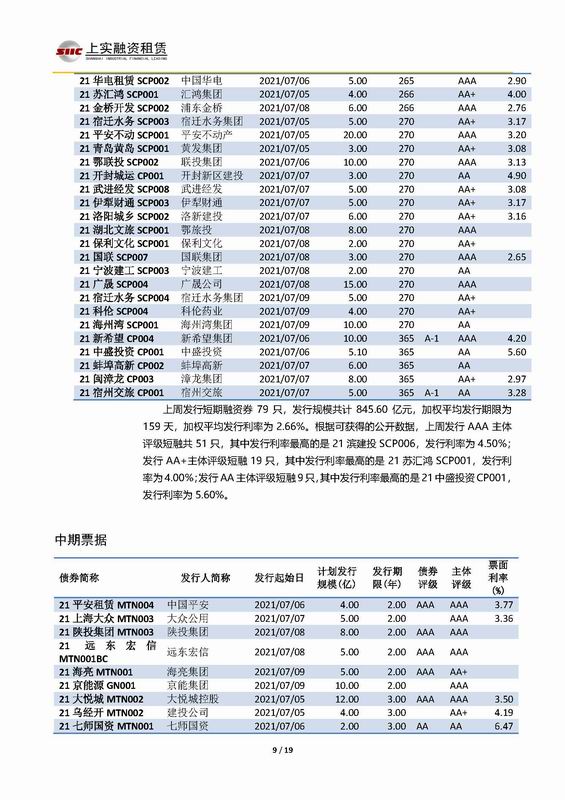 | 當(dāng)前位置:新聞中心 > 上實(shí)-融資工具周報(bào)2021.7.5-2021.7.9 | |||||