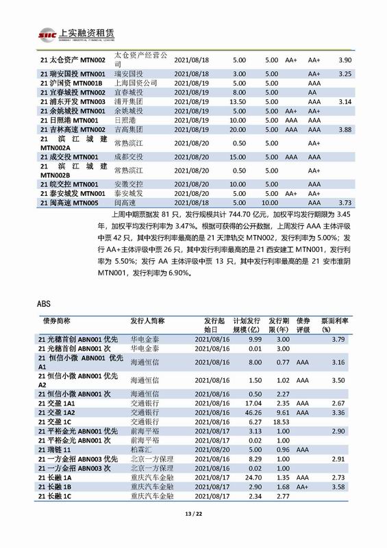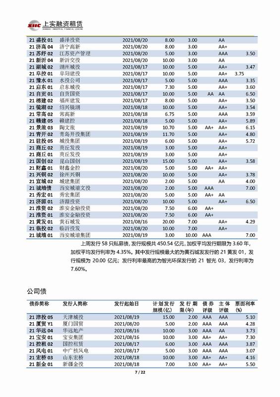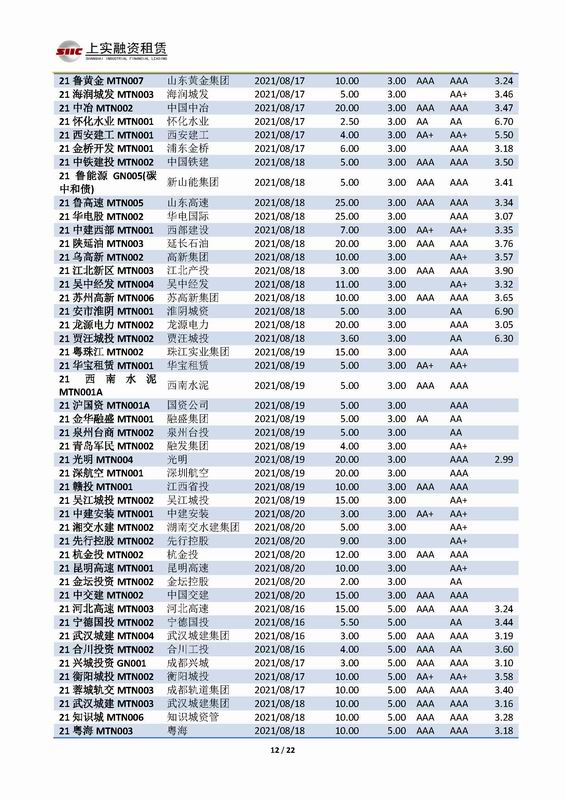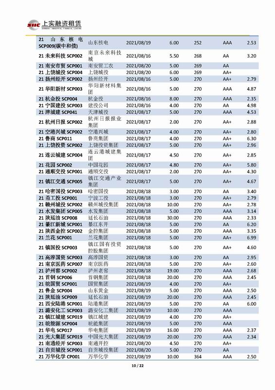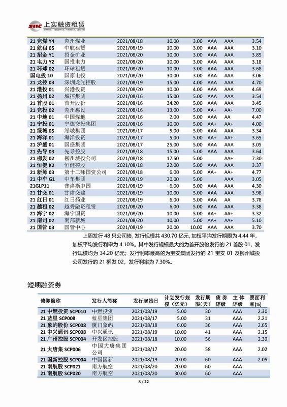 | 當(dāng)前位置:新聞中心 > 上實(shí)-融資工具周報(bào)2021.8.16-2021.8.20 | |||||