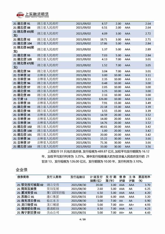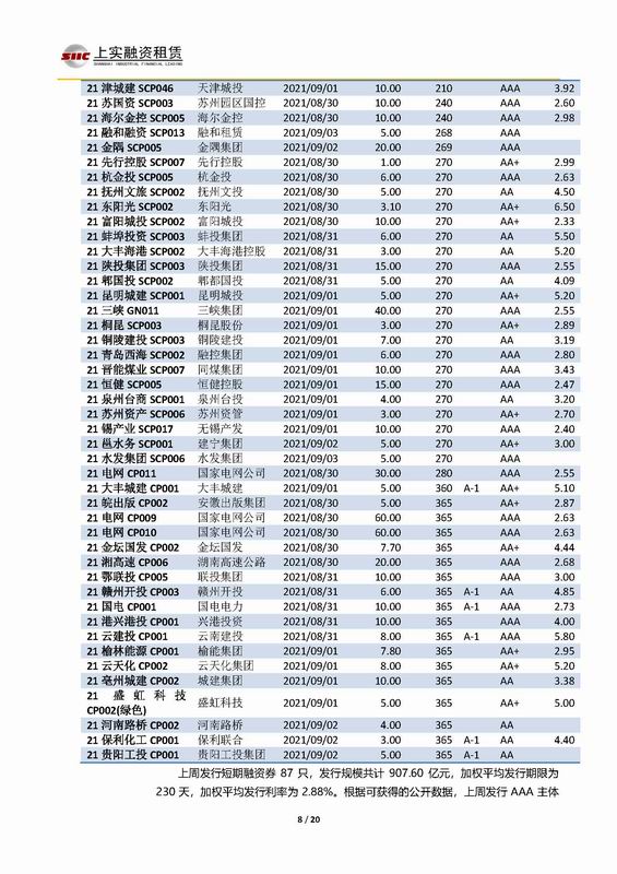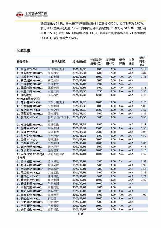 | 當(dāng)前位置:新聞中心 > 上實-融資工具周報2021.8.30-2021.9.3 | |||||