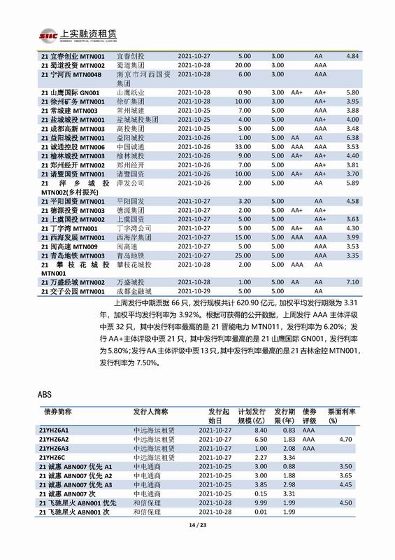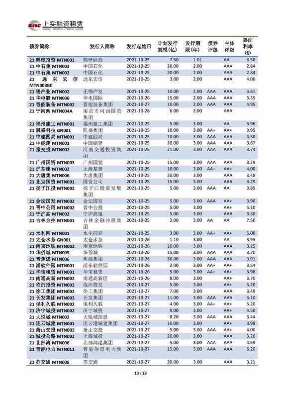 | 當(dāng)前位置:新聞中心 > 上實-融資工具周報2021.10.25-2021.10.29 | |||||