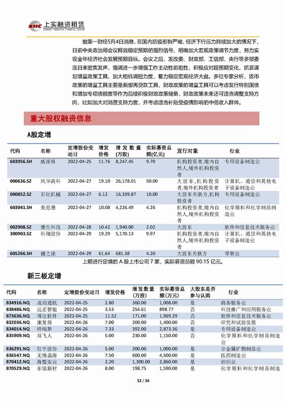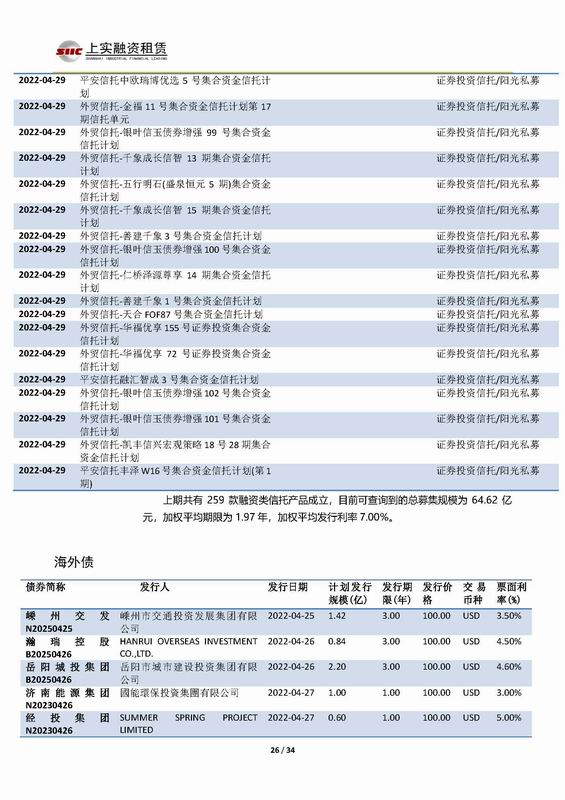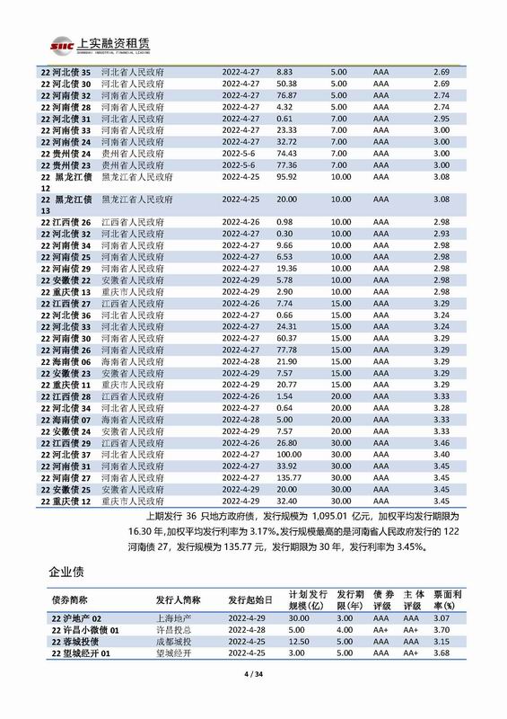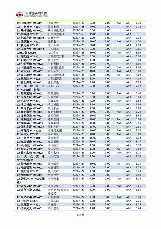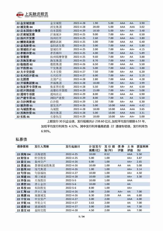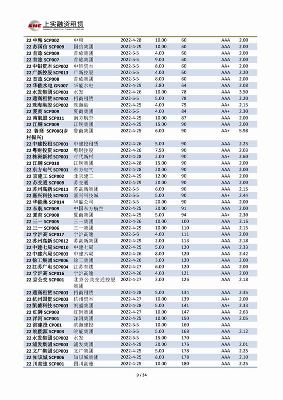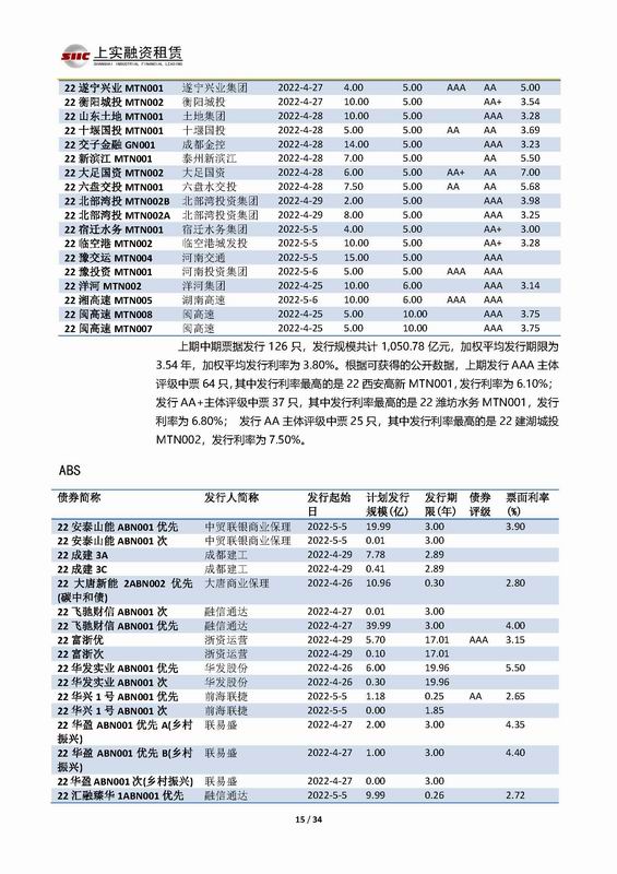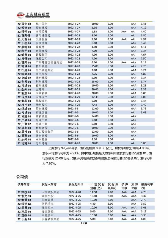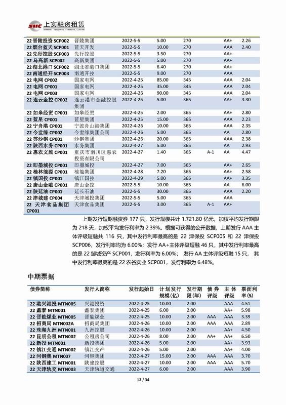 | 當(dāng)前位置:新聞中心 > 上實(shí)-融資工具周報(bào)2022.4.25-2022.5.6 | |||||