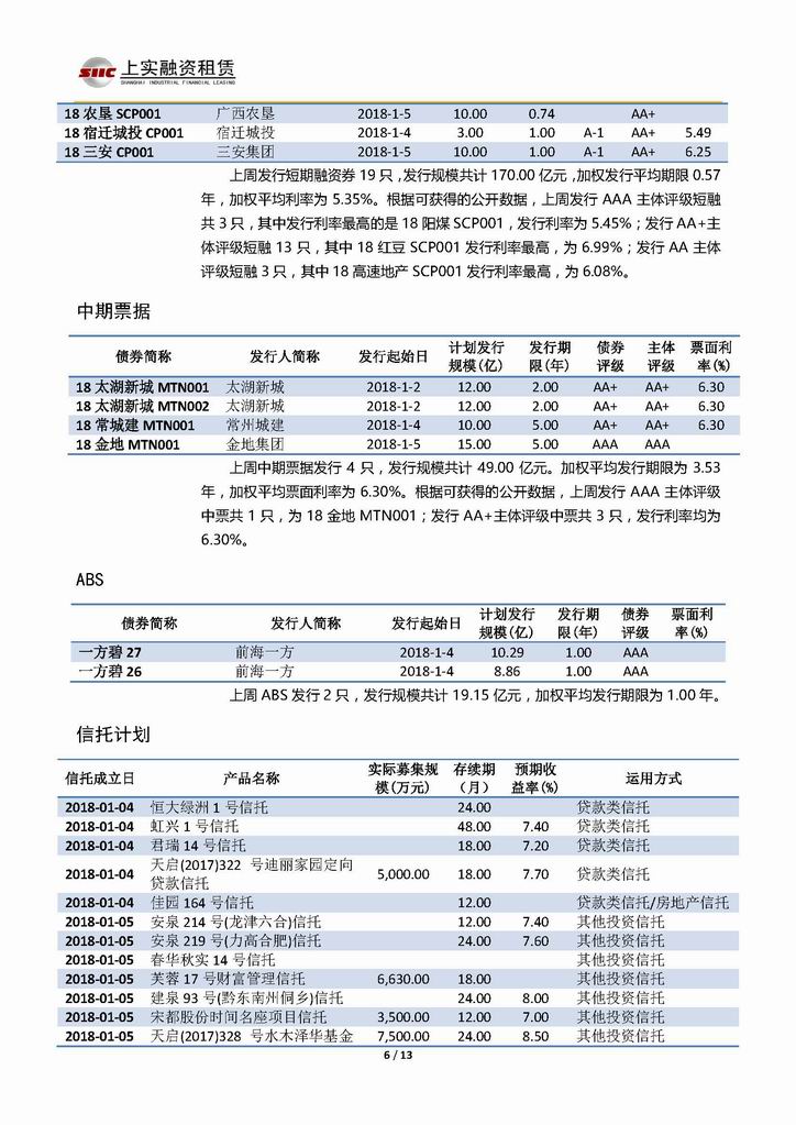 | 當(dāng)前位置:新聞中心 > 上實(shí)-融資工具周報(bào)20171229-20180105 | |||||