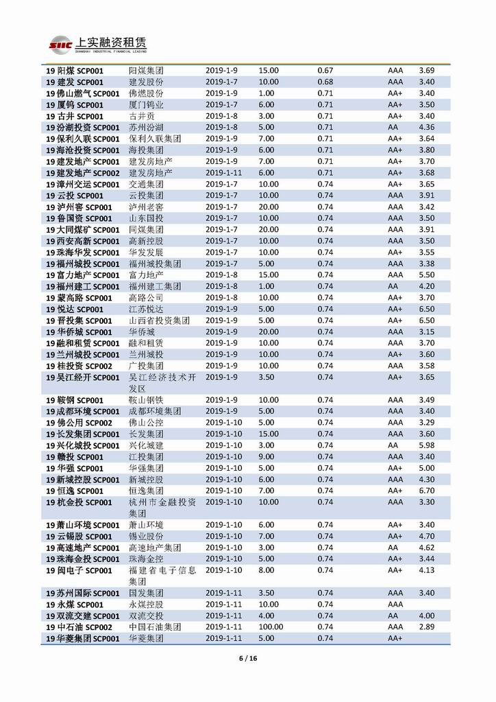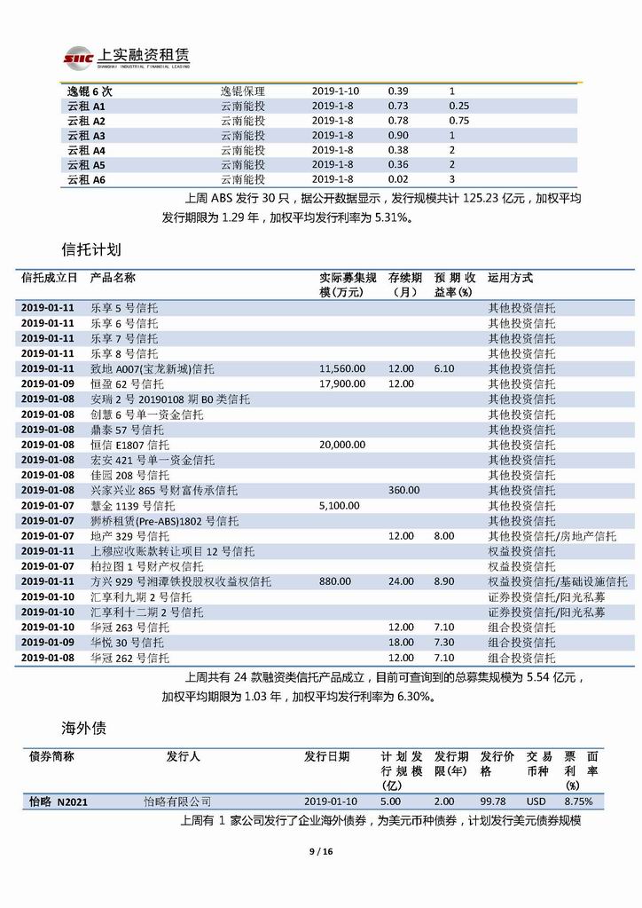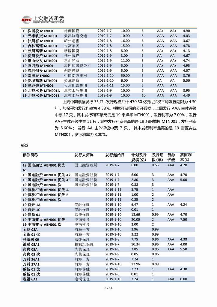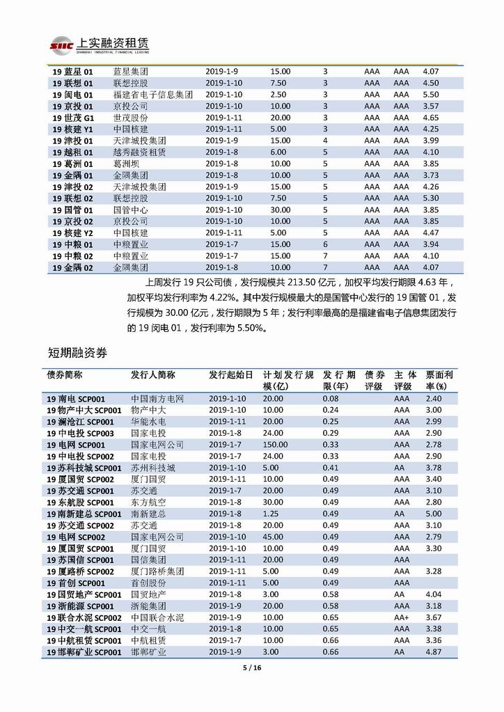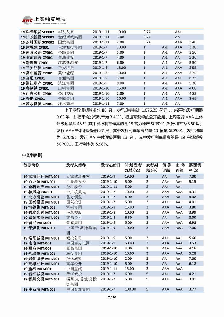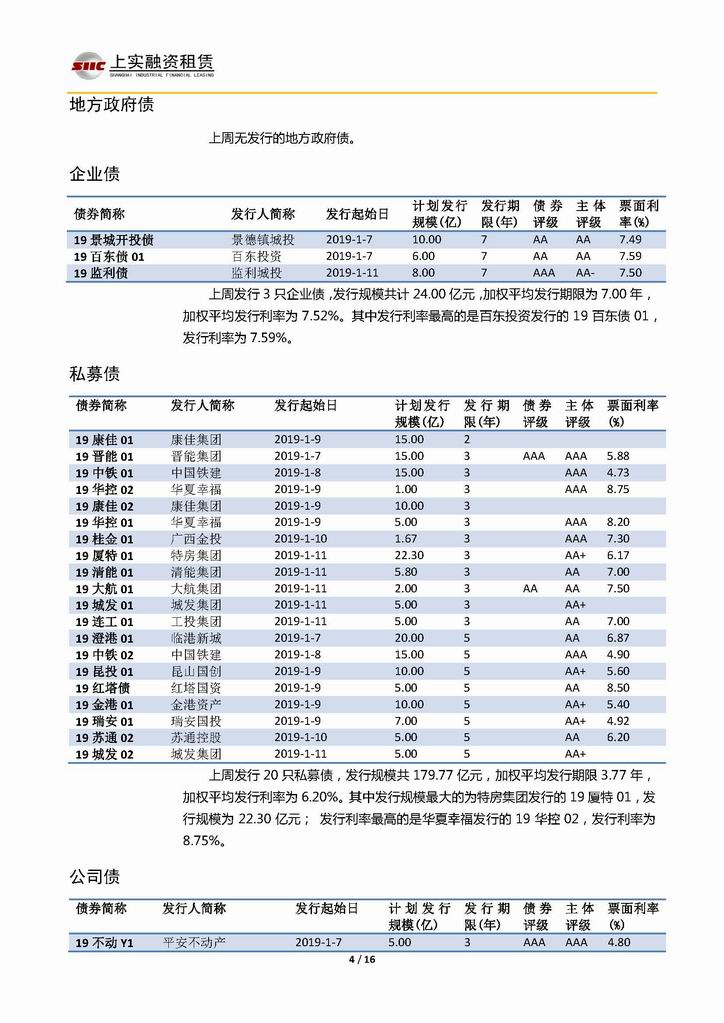 | 當(dāng)前位置:新聞中心 > 上實(shí)-融資工具周報(bào)20190104-20190111 | |||||
