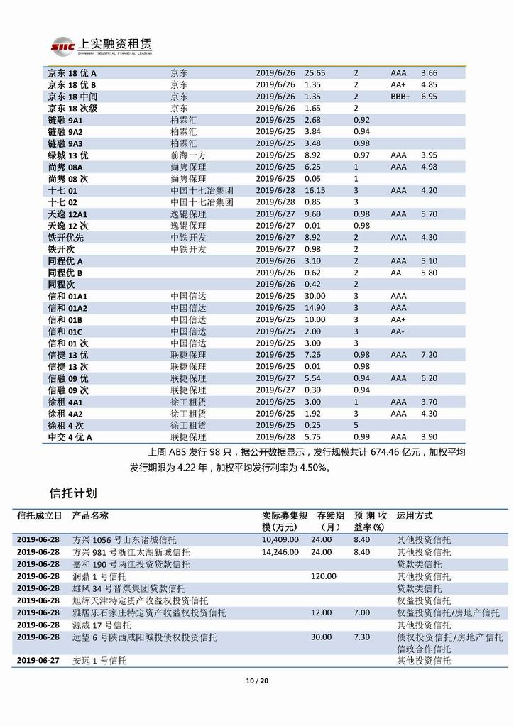 | 當前位置:新聞中心 > 上實-融資工具周報2019.6.24-2019.6.28 | |||||