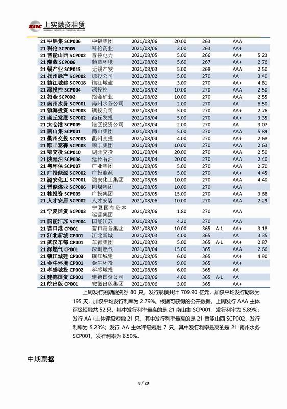 | 當(dāng)前位置:新聞中心 > 上實(shí)-融資工具周報2021.8.2-2021.8.6 | |||||