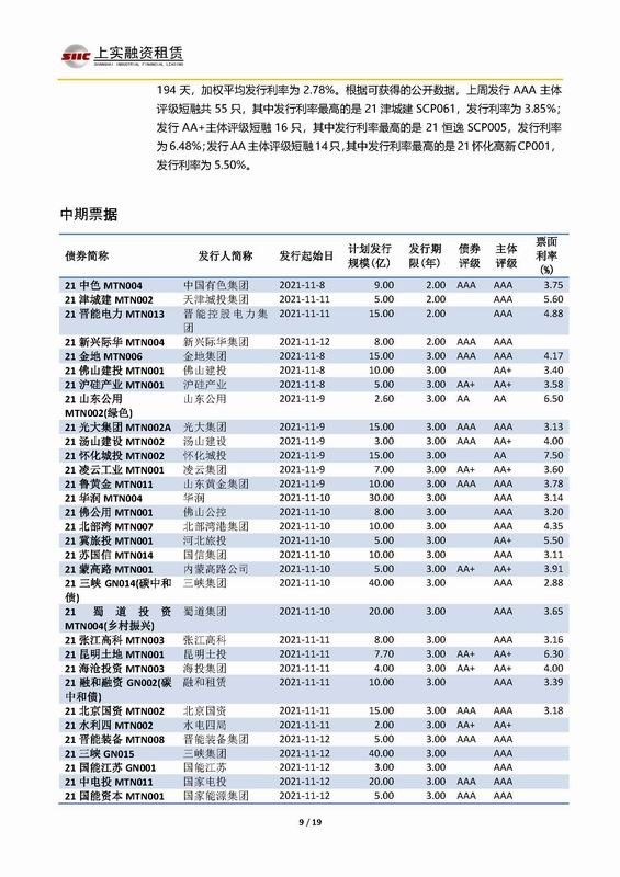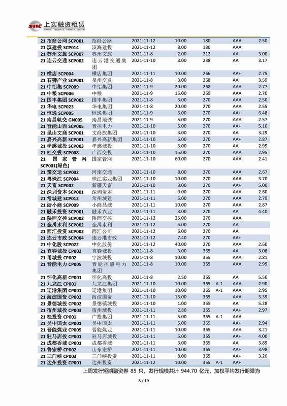 | 當(dāng)前位置:新聞中心 > 上實(shí)-融資工具周報(bào)2021.11.8-2021.11.12 | |||||