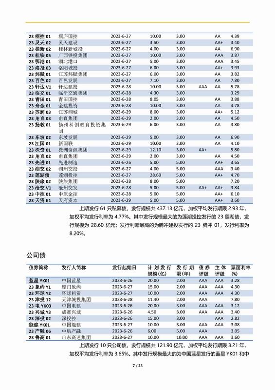 | 當(dāng)前位置:新聞中心 > 上實(shí)-融資工具周報(bào)2023.6.26-2023.6.30 | |||||